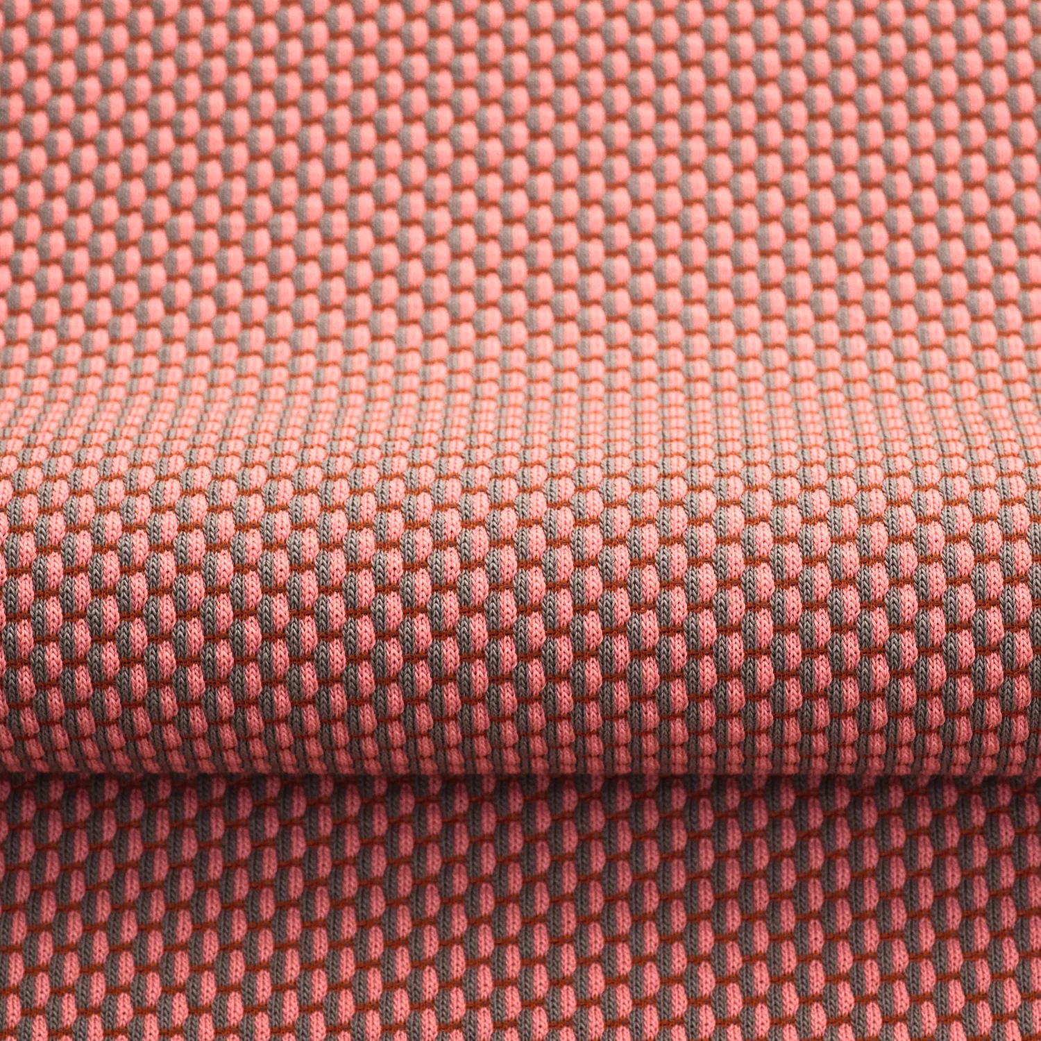 Gebreide meubelstof met een levendig, driedimensionaal patroon dat doet denken aan strengen van veelkleurige parels. Het speelse lichtspel zorgt voor verrassende nuances vanuit elke hoek.