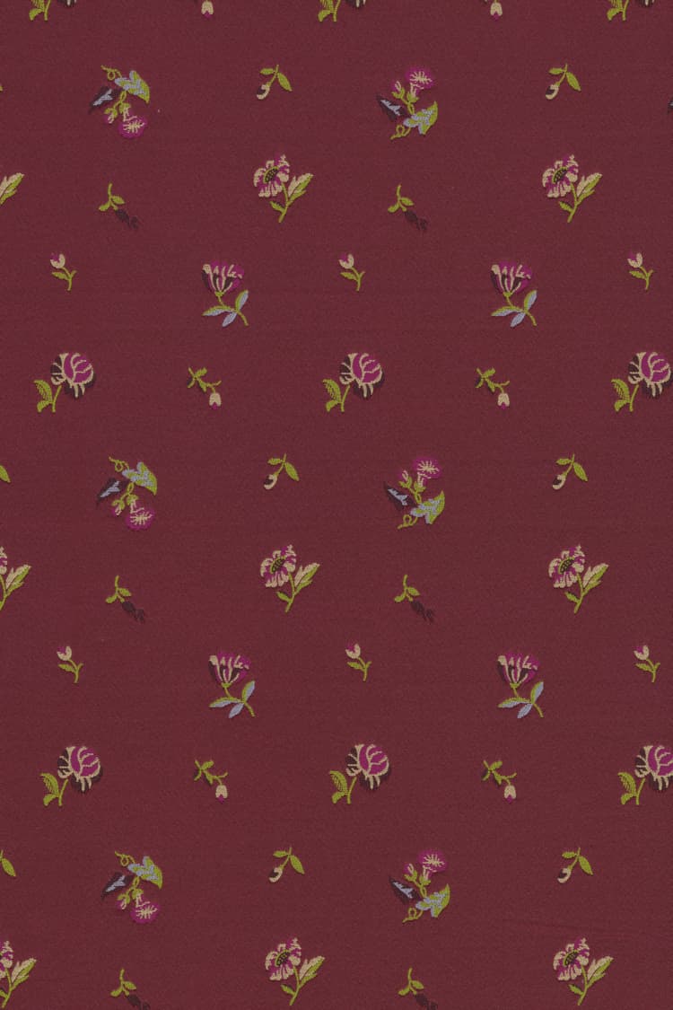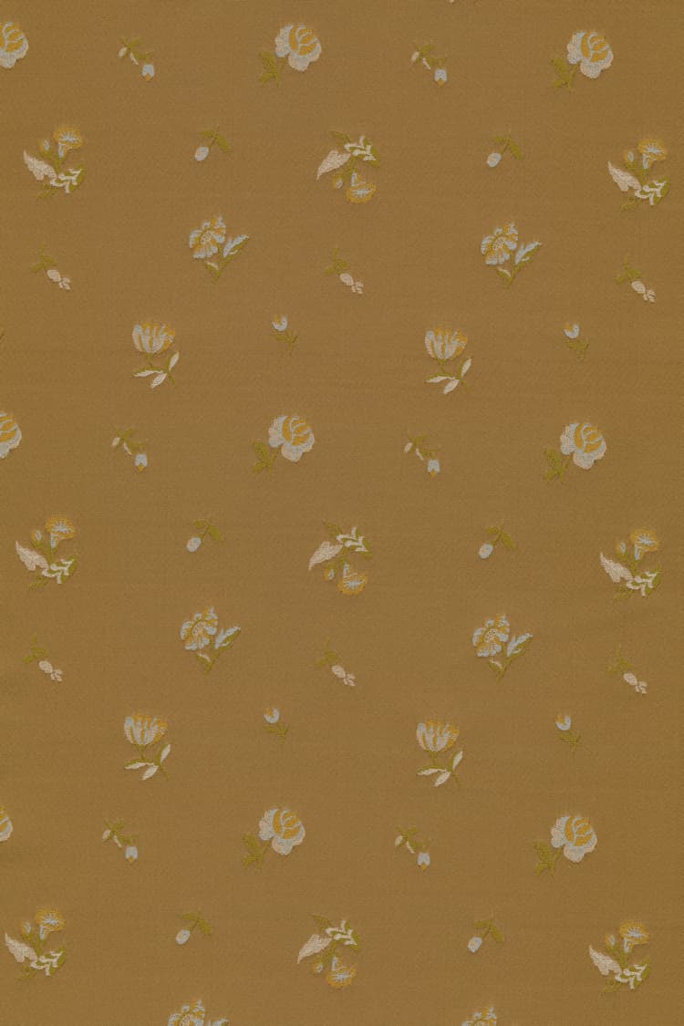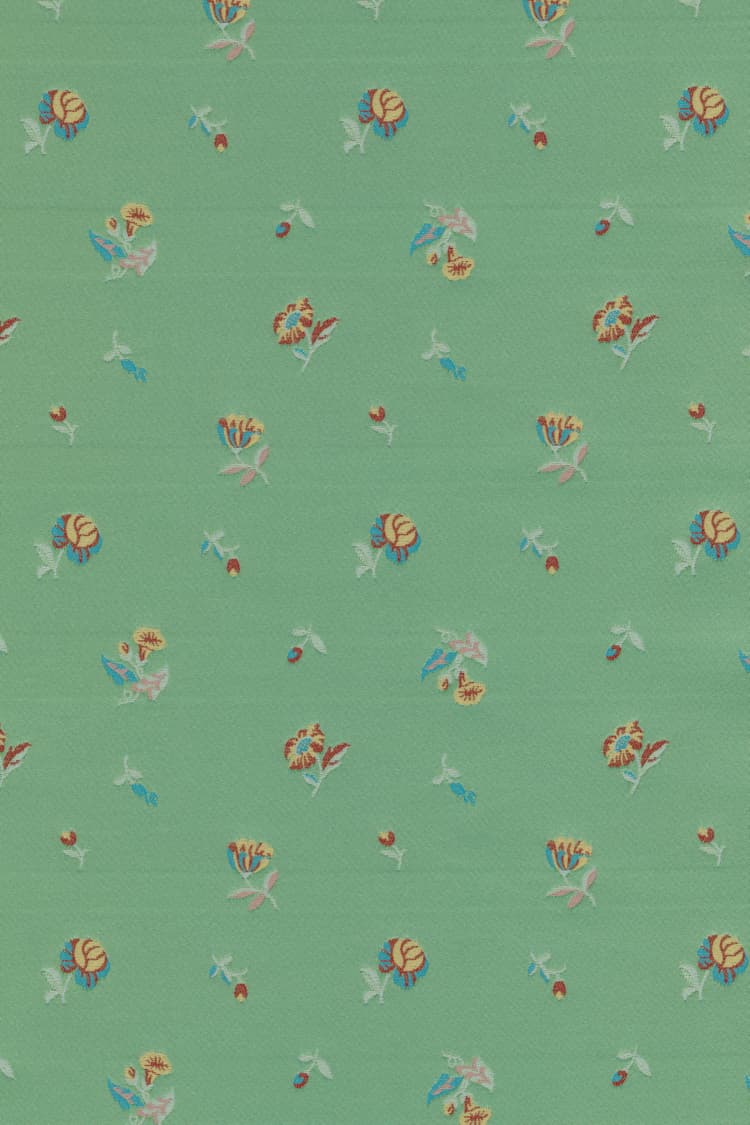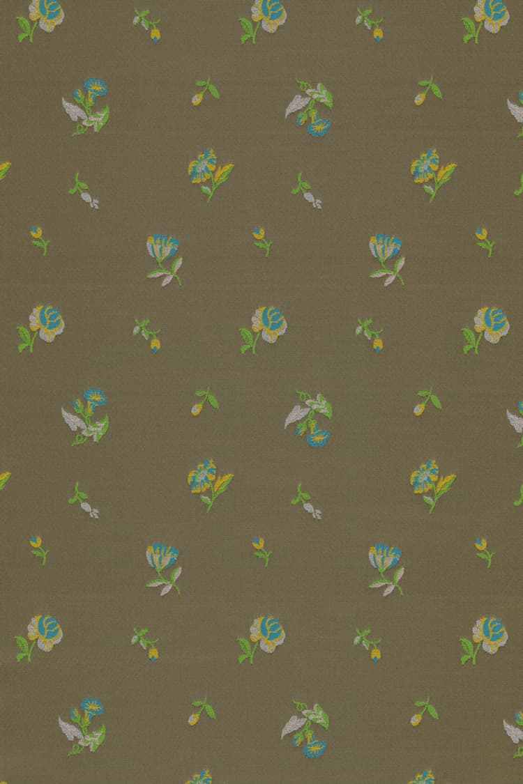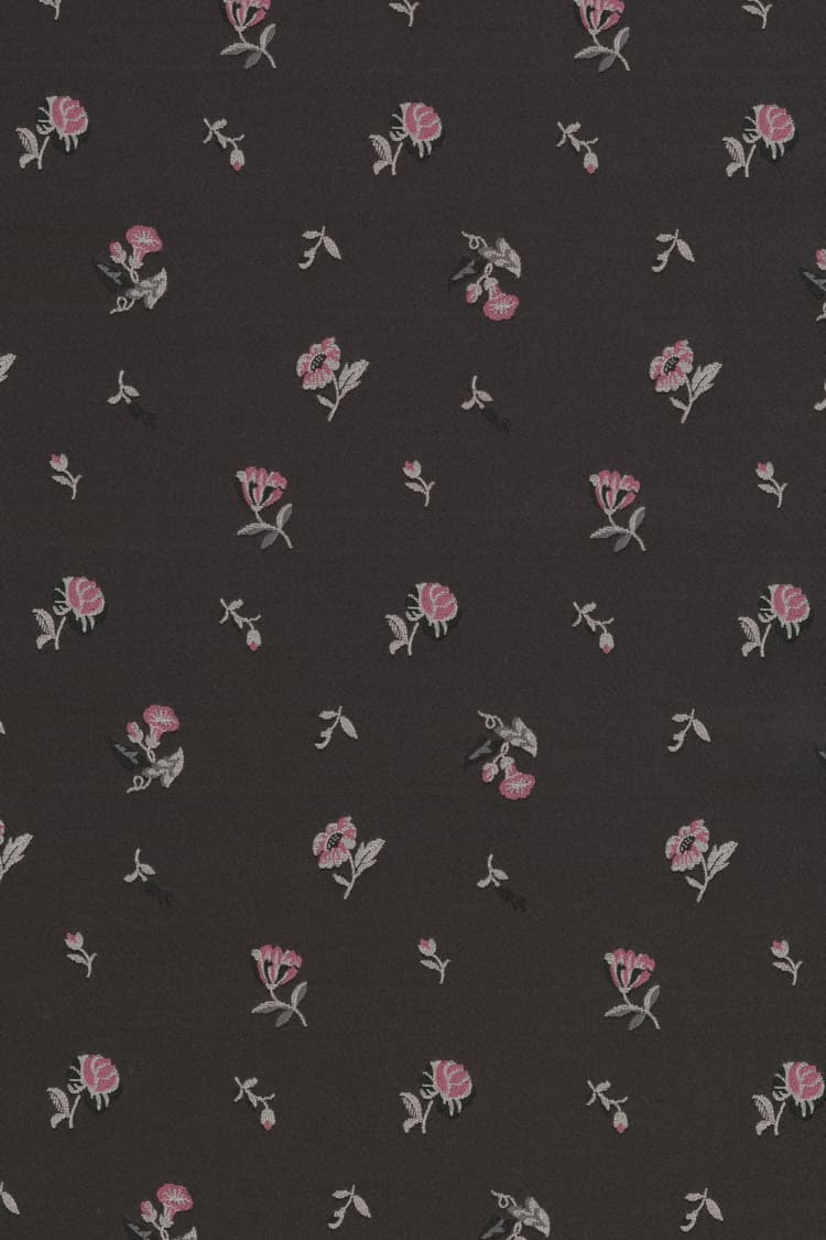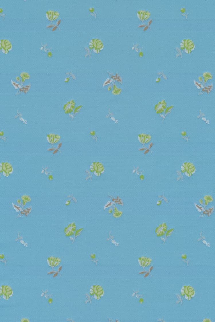 Saji is een couture-geïnspireerde meubelstof die de romantiek van het verleden combineert met een creatieve, moderne twist. Gemaakt van dicht gerecycled polyester, herinterpreteert Saji een klein archiefjacquardpatroon dat is opgewaardeerd qua schaal en kleur voor een emotioneel effect. Frisse tinten lila en roze zijn helder en fris, Eau de nil gecombineerd met turquoise en bordeaux geeft een klassieke herinterpretatie, terwijl zwart, goudkleurig tabak en donker bordeaux een neo-Barokke uitstraling bieden.