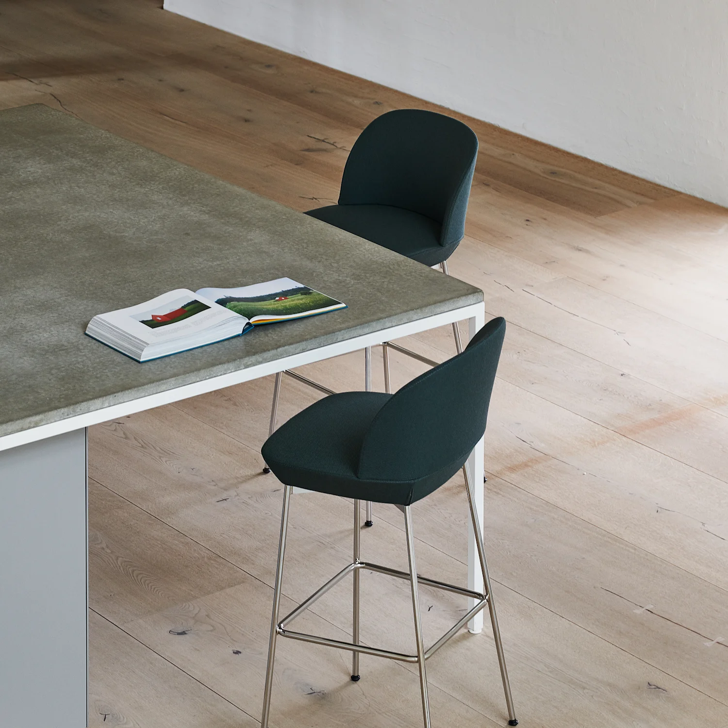 Twill Weave geeft een eigentijdse interpretatie aan de klassieke wollen keperbinding en is ontworpen door de Amerikaanse ontwerper Jonathan Olivares. De volle, stevige structuur ontstaat door het gebruik van dikke, volumineuze wollen garens, geweven in een traditionele keperbinding met uiterst nauwkeurige productiemethoden voor een perfecte kleurweergave. Elke kleurvariant combineert twee ton-sur-ton kleuren – één in de ketting en één in de inslag – die samen exact de kleuren weerspiegelen van mineralen, metalen en keramiek uit de uitgebreide Materials Collection van Harvard University.